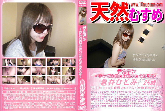 久しぶりにデカサン企画!デカサンならOKということでAV出演を決めてくれました。理由はバレたくないから。バレなければ、AVでエッチしたい、オナニーも毎日するというセックス好きな女の子です。B88、W58、H88と抜群のプロポーション。でも本人はお尻が大きいとコンプレックスなんだそう。デカサンの下は超可愛いらしいのですが、本人の希望ならしょうがないっ!んーんーっと気持ち良さがる姿が印象的なひとみちゃんに、最後はデカサン顔射!男優も過去最高燃えたセックスとのこと。お楽しみください!